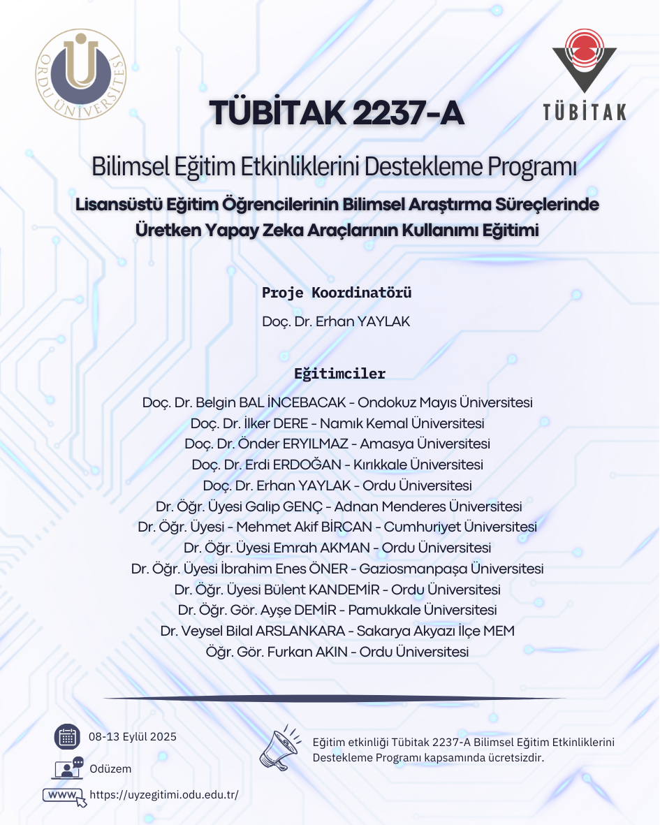 Tübitak 2237-A Lisansüstü Eğitim Öğrencilerinin Bilimsel Araştırma Süreçlerinde Üretken Yapay Zeka Araçlarının Kullanımı Eğitimi